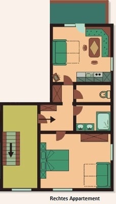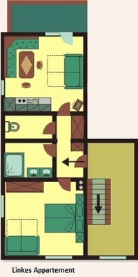 Das Doppelzimmer kann nur in Verbindung mit einem Appartement gebucht werden.
