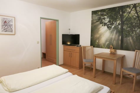 Das separate Doppelzimmer kann für EUR 20,00 pro Tag zu einem der beiden Appartements dazugebucht werden. More space - more comfort! |